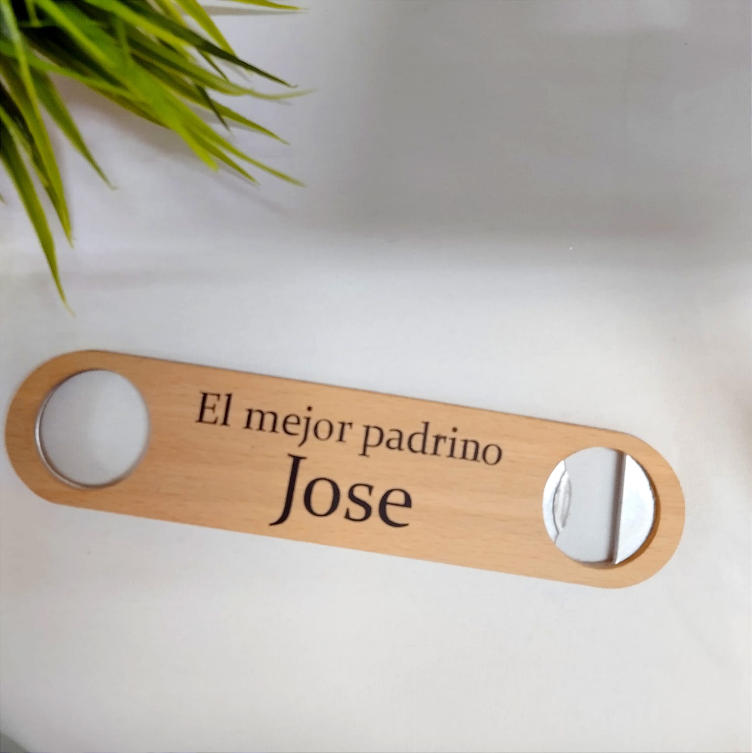 El abridor de bambú personalizado con abridor en un extremo y colgador en el otro es un detalle práctico y elegante para cualquier ocasión. Fabricado en bambú natural, permite personalizarse con nombres, fechas o frases especiales, convirtiéndose en un recuerdo útil y duradero.