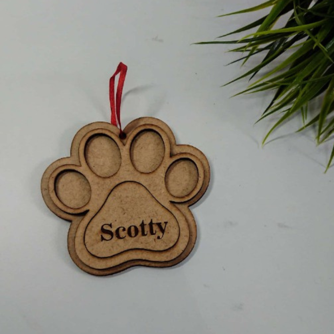 Decora tu árbol con una bola de Navidad de madera en forma de huella de mascota personalizada con nombre, un detalle emotivo para quienes consideran a su peludo parte de la familia. Ideal como adorno navideño personalizado en Canarias, fabricado en madera y perfecto para regalar o recordar a tu mascota estas fiestas.
