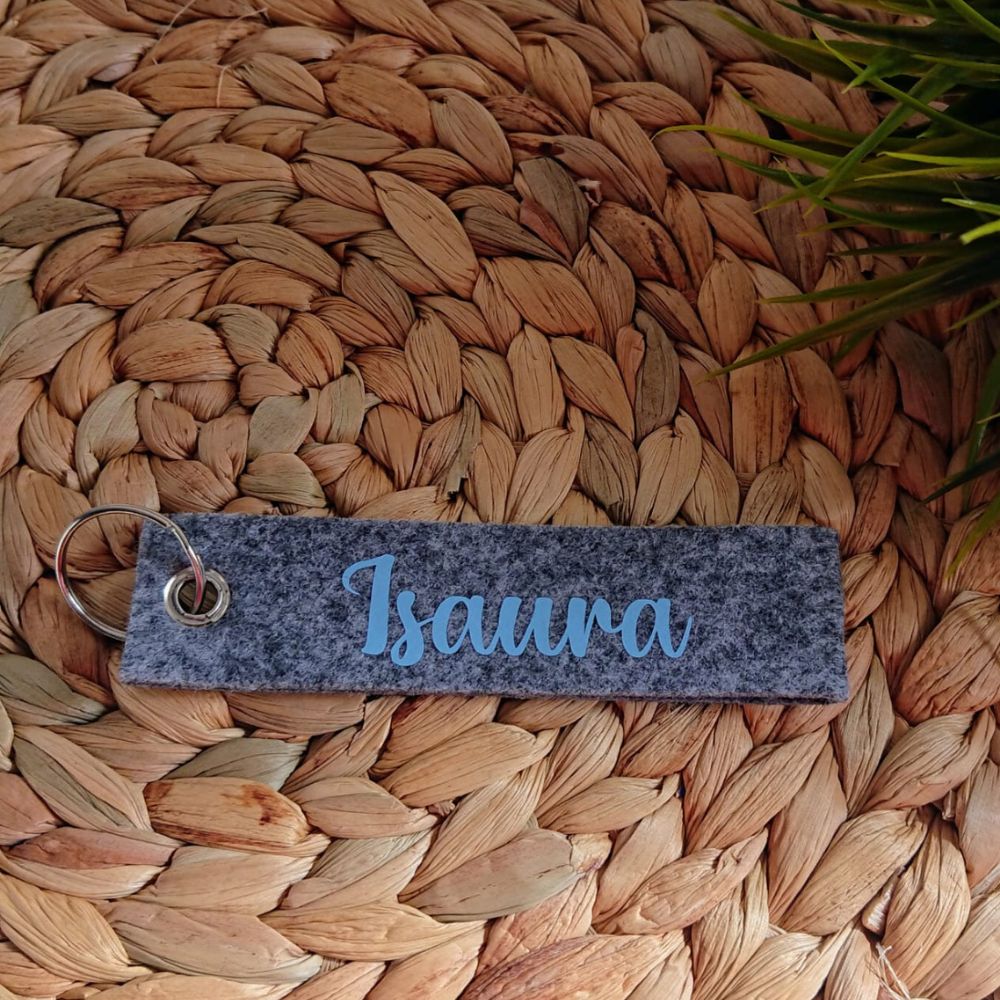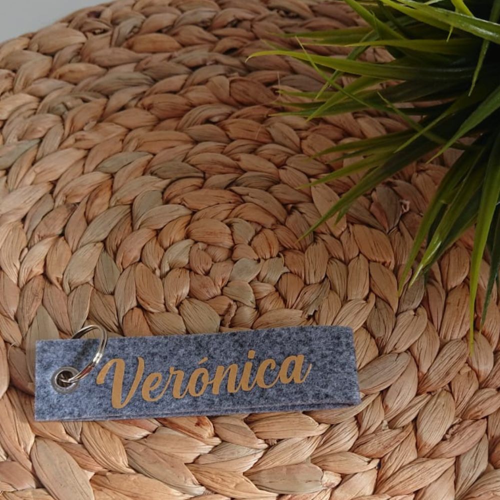 Este llavero gris personalizado es una excelente opción para mantener tus llaves organizadas y añadir un toque de color a tus accesorios. Hecho de fieltro reciclado, es una elección ecológica y sostenible. No pierdas la oportunidad de tener un llavero único con tu nombre en él.