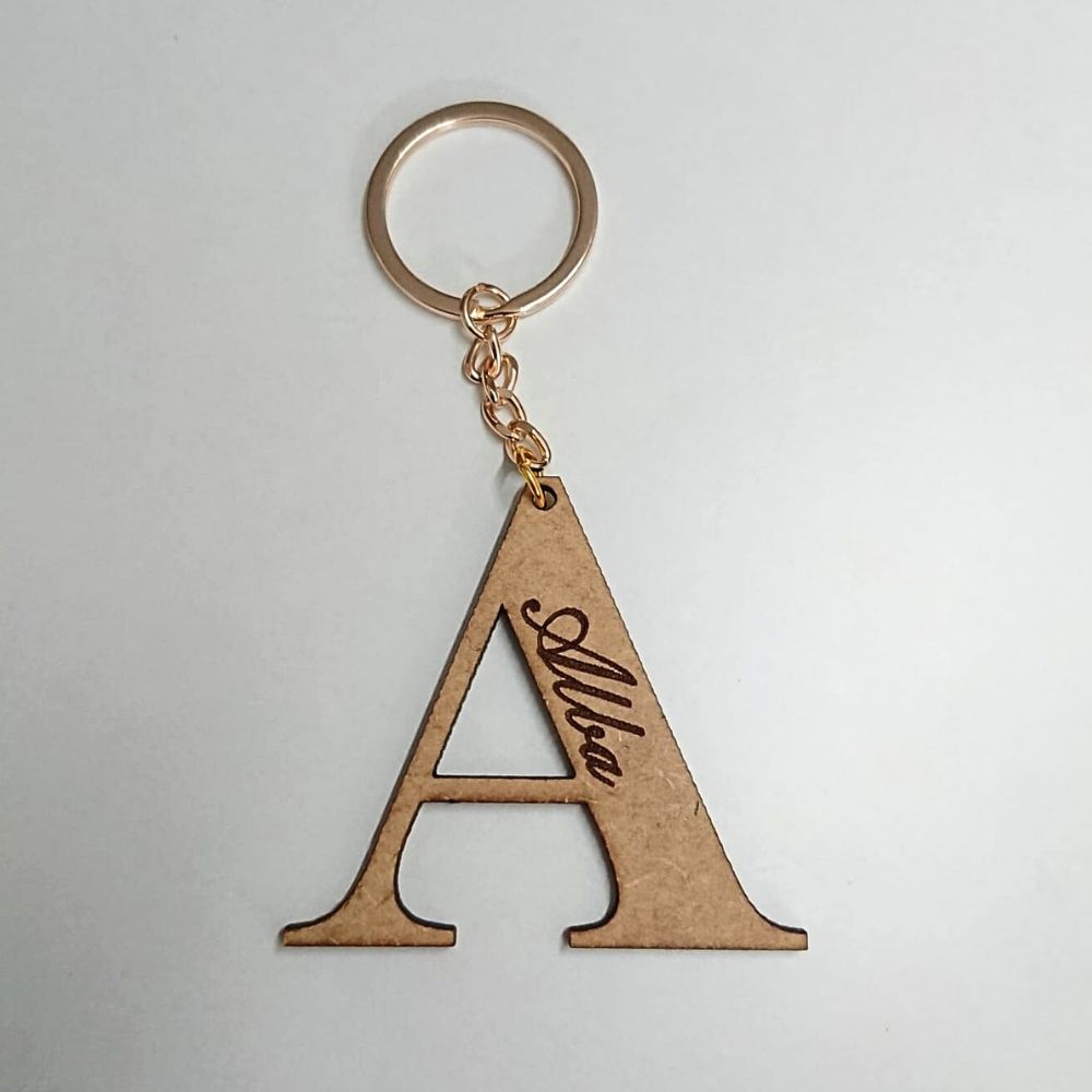 Este llavero inicial con nombre grabado a láser está hecho de madera MDF. Con un diseño elegante y duradero, es una opción perfecta para mantener tus llaves organizadas y agregar un toque personalizado a tu día.