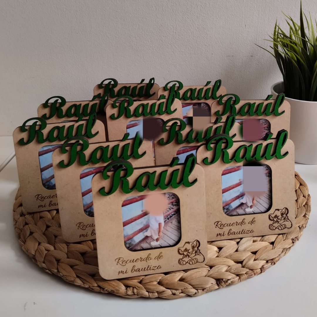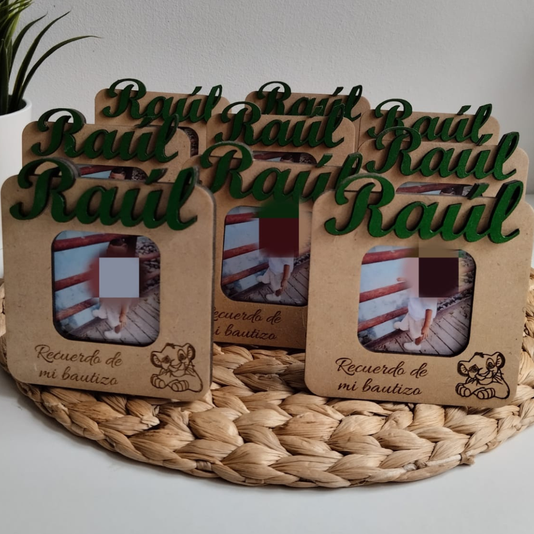 Cada recordatorio está elaborado con madera MDF y pintado a mano con todo detalle, creando un recuerdo único, artesanal y lleno de color. La combinación de la foto y el nombre grabado convierte cada pieza en un regalo exclusivo que encantará a grandes y pequeños.